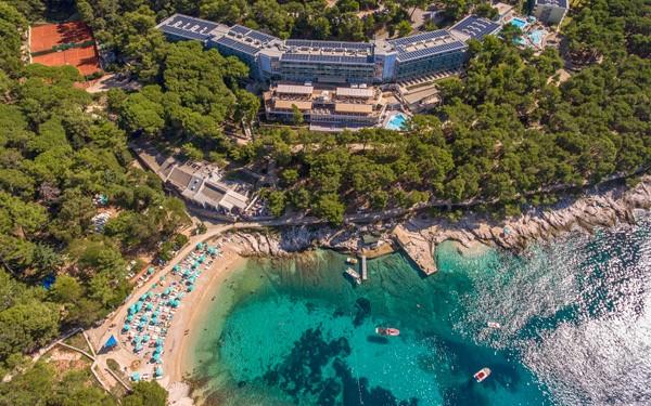 Hotel Aurora je moderní hotel a nachází se v zátoce "Sunčana Uvala" v nejkrásnější části ostrova, obklopený borovicovým lesem, vzdálený asi 2 km od centra města. Hotel je centrálně klimatizován nebo vytápěn, je v provozu po celý rok, má 4 patra a 3 výtahy. Pokoje jsou dvoulůžkové, typu Standard, Standard Plus, Classic, Premium a pokoje Suite. Pokoje Standard a Classic nemají možnost přistýlky. U pokojů Standard plus je přistýlka možná pouze pro dítě do 5 let, u pokojů Premium je přistýlka možná pro dítě nebo dospělou osobu. Všechny pokoje jsou prostorné, moderně vybavené, mají SAT/TV, telefon, trezor, koupelnu, vysoušeč vlasů, klimatizaci, WI-FI, balkon. Pohled na moře má pouze pokoj Premium BM. U ostatních pokojů na mořskou stranu je pohled na moře částečně zakryt stromy. Minibar za poplatek. Hostům je k dispozici klimatizovaná restaurace s částí à la carte a terasou s překrásným výhledem na moře, lobby bar, kavárna, směnárna, kadeřnický salón, prodejna s novinami a suvenýry, ambulance, plně vybavený konferenční sál pro 350 hostů. Hotel má venkovní bazén s mořskou vodou, dětský bazén, vnitřní bazén s vyhřívanou mořskou vodou (v sezóně uzavřen); dále klienti mohou využít služby wellness centra Aura Botanic SPA (v ceně jen sauny, relax zóna) - obsahuje relax zónu, několik druhů saun, jacuzzi, solárium, masážní a kosmetický salón. Hosté mají možnost nabíjení elektromobilů. V blízkosti hotelu slouží ke sportovnímu vyžití fitness centrum, tenisové kurty, škola tenisu, víceúčelové hřiště na míčové hry, minigolf, kuželky, pétanque, plážový volejbal, stolní tenis, půjčovna jízdních kol, vodní sporty a další. Pro děti a dospělé je organizovaná bohatá celodenní animace ve spolupráci s hotelem Vespera, kluby pro děti dle věku. Pláže jsou přírodní kamenité s upravenými plochami na slunění, dvě oblázkové pláže s hrubým pískem vhodné pro malé děti, vzdálené 50-150 m od hotelu. Lehátka a slunečníky u bazénu v ceně (omezený počet), na pláži za poplatek. Na pláži je dětské hřiště a také záchranná služba, několik restaurací à la carte. V blízkosti se nachází nudistická pláž.