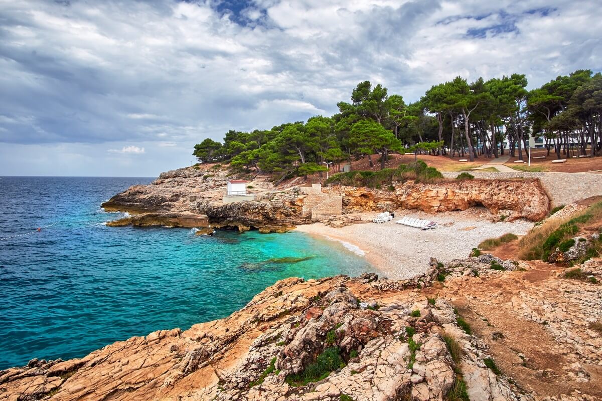 Další krásnou pláží je pláž Histria, napůl kamenitá, napůl betonová, která vyniká skvělou kvalitou vody a fantastickou atmosférou. Nachází se před hotelem Park Plaza Histria a je vhodná pro všechny včetně dětí a seniorů. Kromě barů a restaurací tady najdete také mnoho dalších zařízení, jako je hřiště na plážový volejbal, tenisový kurt, squashový kurt a minigolf.